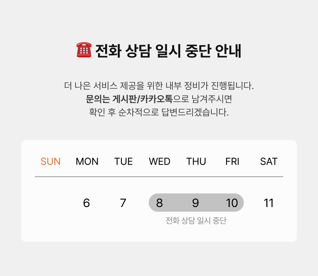 고객센터로 접수치 않고 임의반송 시 접수되지 않고 택배비가 고객님께 청구되니 유의해주세요!